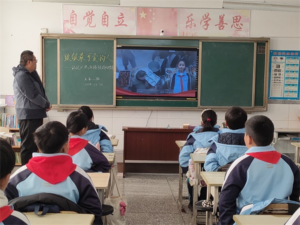本次活动的一大亮点,是由该校学生代表自主录制的“致敬最可爱的人”主题教育宣传视频。视频中,学生以同龄人视角讲述长津湖战役胜利的历史时刻,用真挚的语言传递英雄精神,成为本次教育活动的独特载体。此外,学生们还利用课余时间查阅史料、绘制手抄报,观看《长津湖》电影解说,直观感受志愿军战士的奉献与担当;组织学生观看了学校自制的主题教育视频,深化对“平安由英雄热血铸就”的理解。在交流分享环节,学生们以极高的热情投入学习讨论:围绕“英雄精神伴我成长”的主题,结合观影、创作及观看自制视频的经历各抒己见;班主任与学生干部随机采访同学,倾听大家对英雄的印象、对12月24日这一特殊日子的新认知;各班还以“一人一句话”的形式书写感悟,凝聚成专属的爱国感悟集,每一份分享与书写都展现出学生们的认真与真诚。