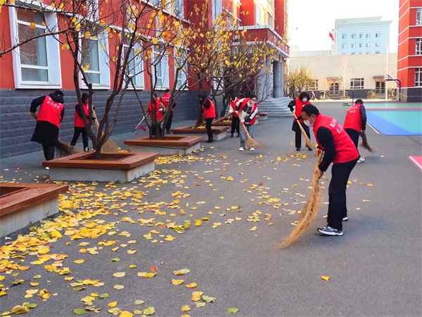 秋末冬初,树木落叶随风而下,为校园增添诗意美感的同时,也带来了成倍的垃圾量,增加了后勤教师的劳动负担。为了给全校师生创造清洁优美的校园环境,助力文明校园创建工作,进一步提高党员志愿服务意识,以实际行动践行全心全意为人民服务初心,经支委会研究决定,胜利小学党支部于11月3日早晨组织党员志愿者开展了“清扫落叶 美化校园”主题党日暨志愿服务活动,清扫校园内落叶,营造整洁舒适的氛围。
