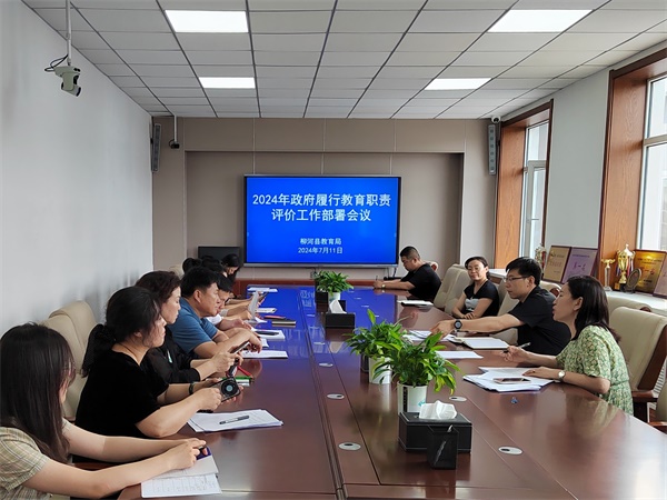 2024年7月11日下午,柳河县教育局组织召开2024年政府履职工作安排部署会议,贯彻落实省政府教育督导委员会下发的《关于开展2024 年对市级政府履行教育职责评价的通知》和市政府教育督导委员会下发的《2024年通化市政府履行教育职责评价实施方案》精神,安排部署2024年度政府履职督导评估自评工作。会议由督导室负责人刘青同志主持,教育局十六个相关科室和部门负责人、教育局副科级专职督学刘彦同志参加会议。